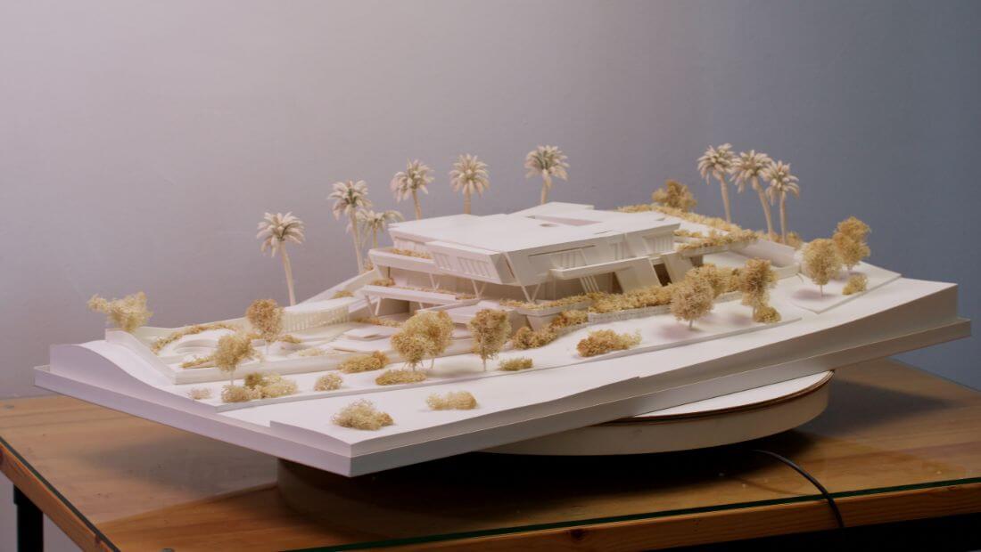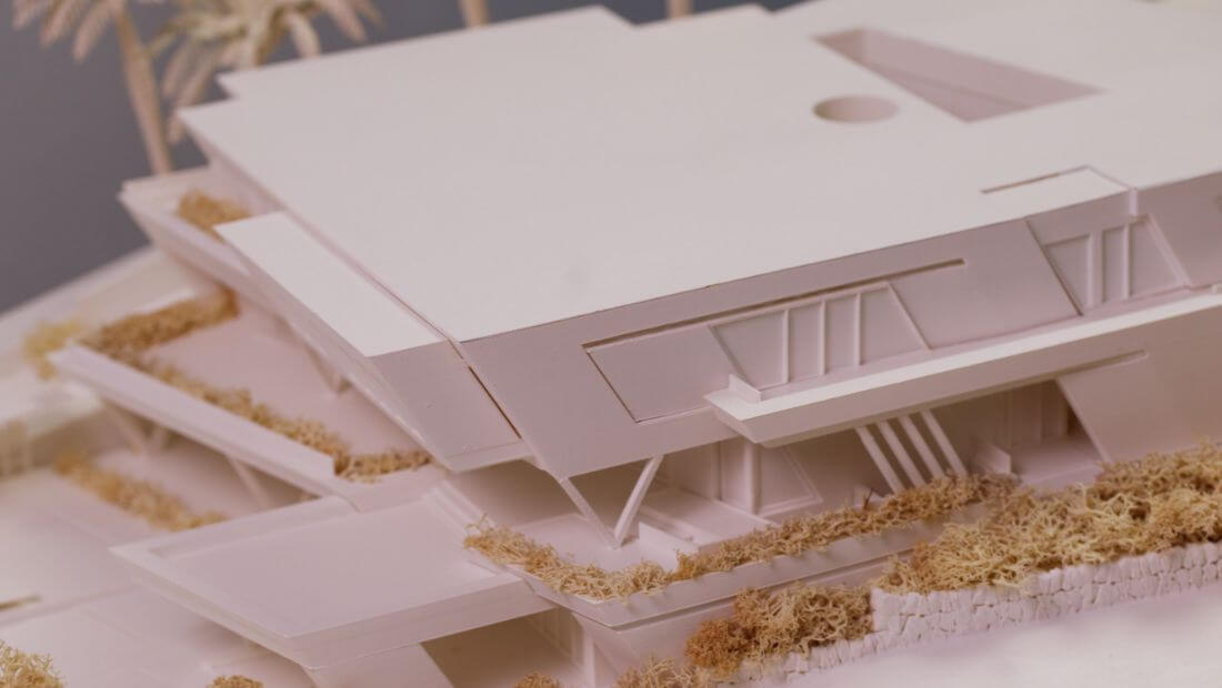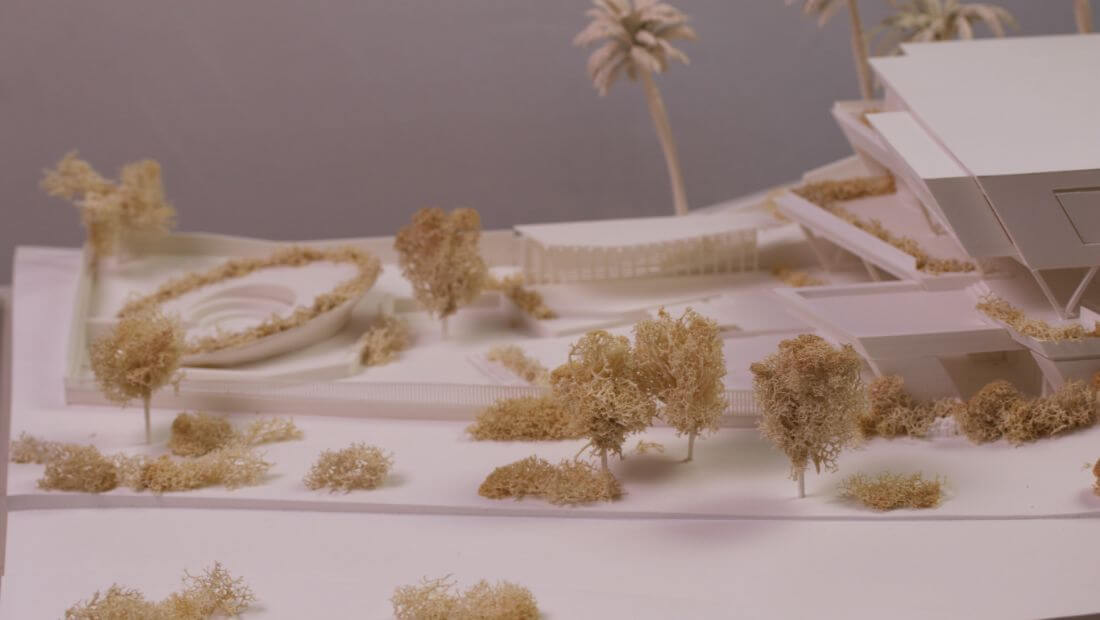 Integrarea verdeaței, a aleilor și a palmierilor evidențiază relația dintre spațiile interioare și cele exterioare, subliniind un stil de viață conectat la natură. Macheta demonstrează nu numai caracterul arhitectural al casei, ci și fluxul său spațial și conexiunea cu terenul.