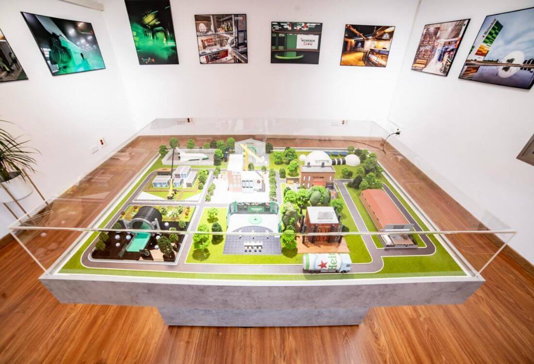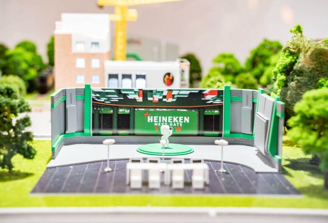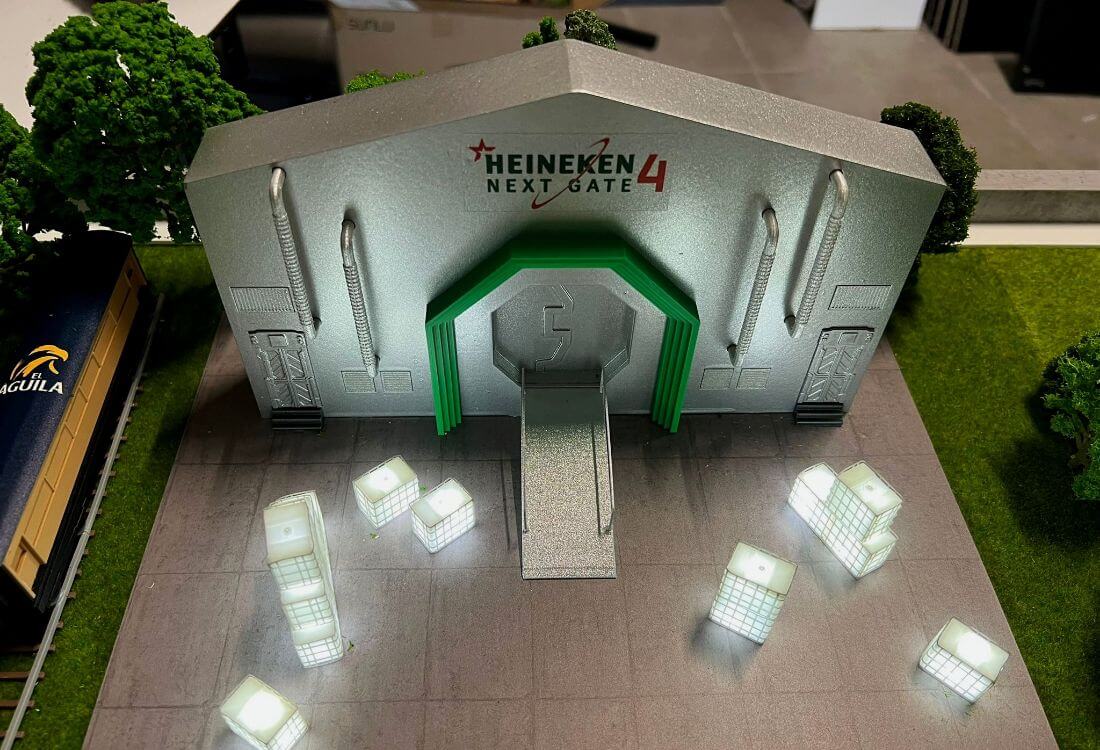 Macheta este expusă într-un suport modern, iluminat, personalizat cu brandingul Heineken Next Gate, transformând întregul ansamblu într-o piesă expozițională de impact, ideală pentru prezentări, spații corporate sau zone de eveniment. Rezultatul final este atât o recapitulare vizuală a celor zece ani de proiecte, cât și o piesă de colecție ce surprinde spiritul inovator și evoluția brandului.